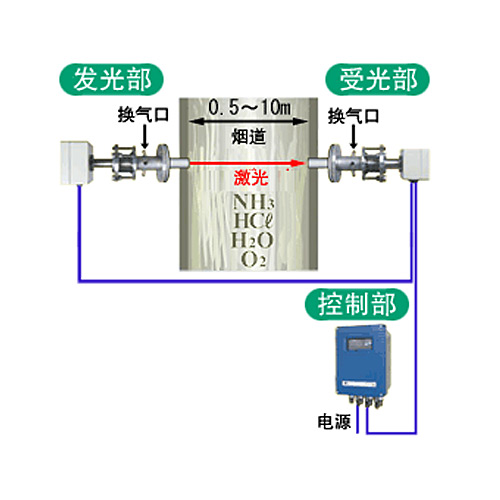 >本產(chǎn)品是將受光部和發(fā)光部直接安裝在煙道中,可連續(xù)測(cè)量排氣中的HCl、NH3、O2、CO、CO2、CH4氣體濃度的激光式氣體分析儀。